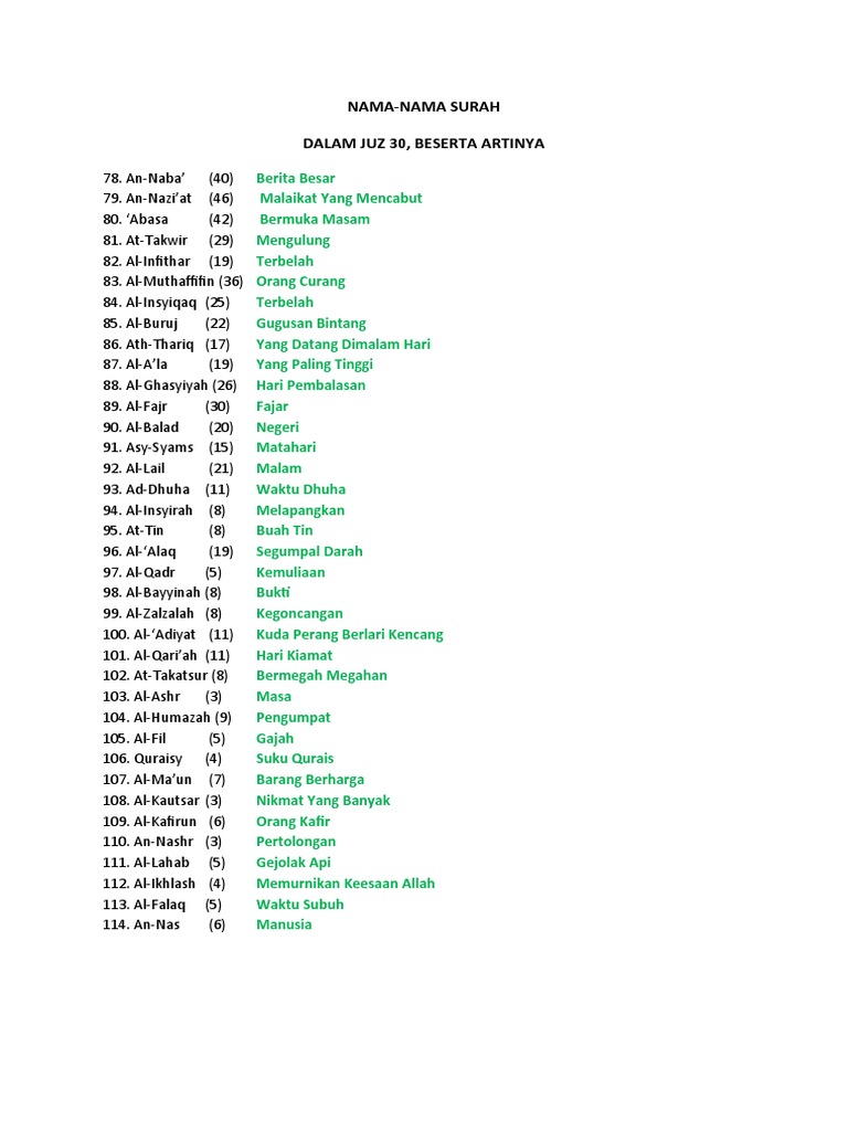 Related : Senarai Surah Juz Amma : Dengan demikian, juz amma ini mengandung surat yang paling banyak di al quran dibandingkan dengan jumlah surah di juz lainnya..