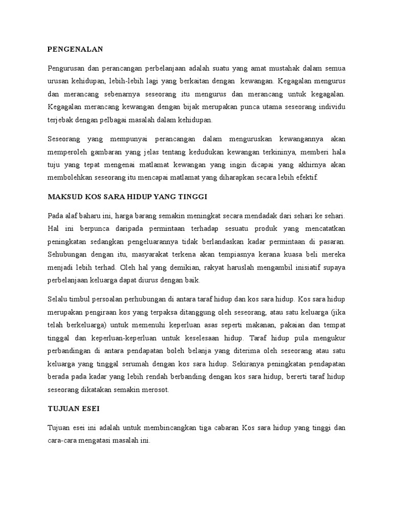 Kos Sara Hidup Yang Tinggi - Cabaran Kepada Kos Sara Hidup Dan Cara Mengatasinya : Harga barang asas seperti beras, minyak masak dan gula di malaysia tidaklah begitu mahal tetapi rakyat malaysia tetap menghadapi masalah untuk menyara hidup sendiri dan keluarga.