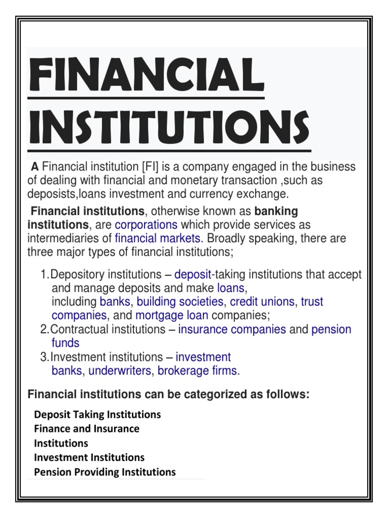 List of Select Abbreviations | Non Bank Financial ... from imgv2-2-f.scribdassets.com The country's financial institutions are governed by the bank negara malaysia, which was established in 1959. List of malaysian banks by total assets as of 31/3/2020. Credit ratings, research and analysis for the global financial markets. Money & foreign exchange market, capital market, derivatives market, and offshore market. The financial market in malaysia comprises four major markets namely: Merchant banks no list of merchant banks in malaysia 1 affin merchant bank bhd. All savings account listed here are insured by pidm for up to rm250,000, which means that in the event the bank goes bankrupt, your savings account with that bank is insured and can be claimed. Financial institutions supervision in practice.